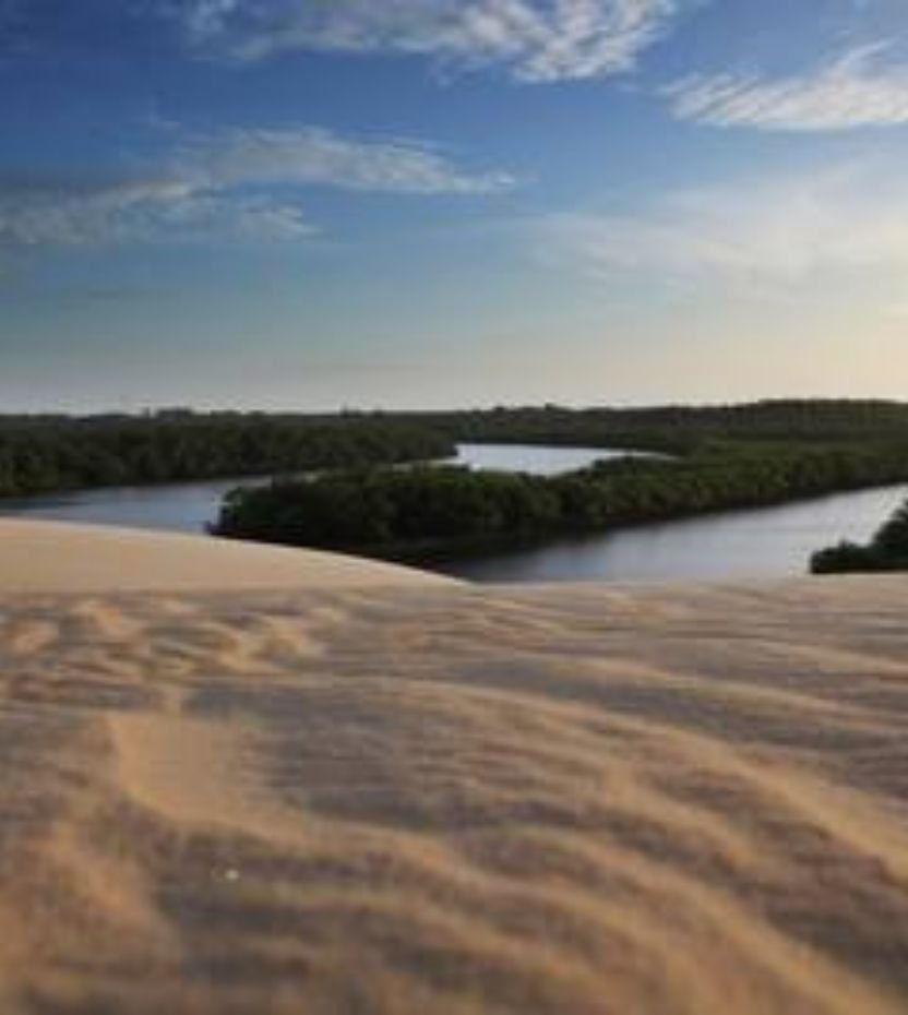 Em Icaraizinho, a natureza não é apenas o cenário, é a protagonista que dita um ritmo de vida mais lento e autêntico. Com um clima privilegiado que presenteia a região com 9 meses de sol por ano, o destino é um convite permanente ao pé na areia e ao banho de mar em águas mornas. Aqui, a paisagem se transforma a cada curva: da imponência das dunas móveis ao abraço sereno do rio em Moitas, tudo sob uma brisa constante que suaviza o calor do Ceará. É o refúgio ideal para quem busca desconectar do asfalto e sintonizar com o essencial, onde o luxo se traduz no silêncio de uma praia intocada e na geometria orgânica dos coqueirais que emolduram o horizonte.